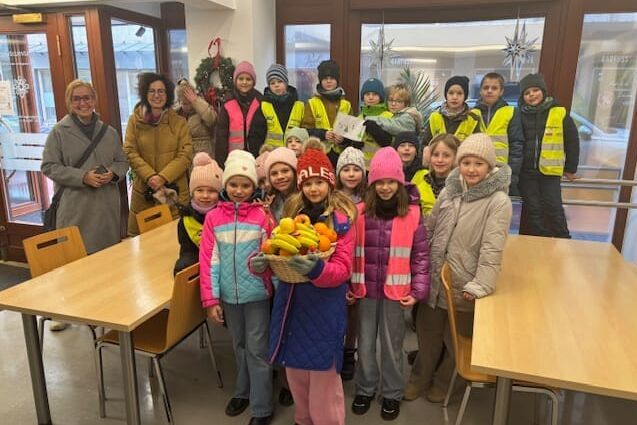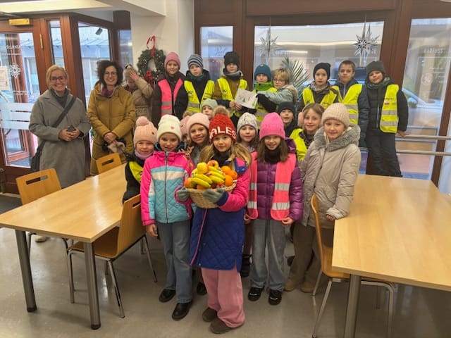 Heute war die 3b im Vinzenzstüberl und hat einen Obstkorb mit einer Geldspende übergeben.