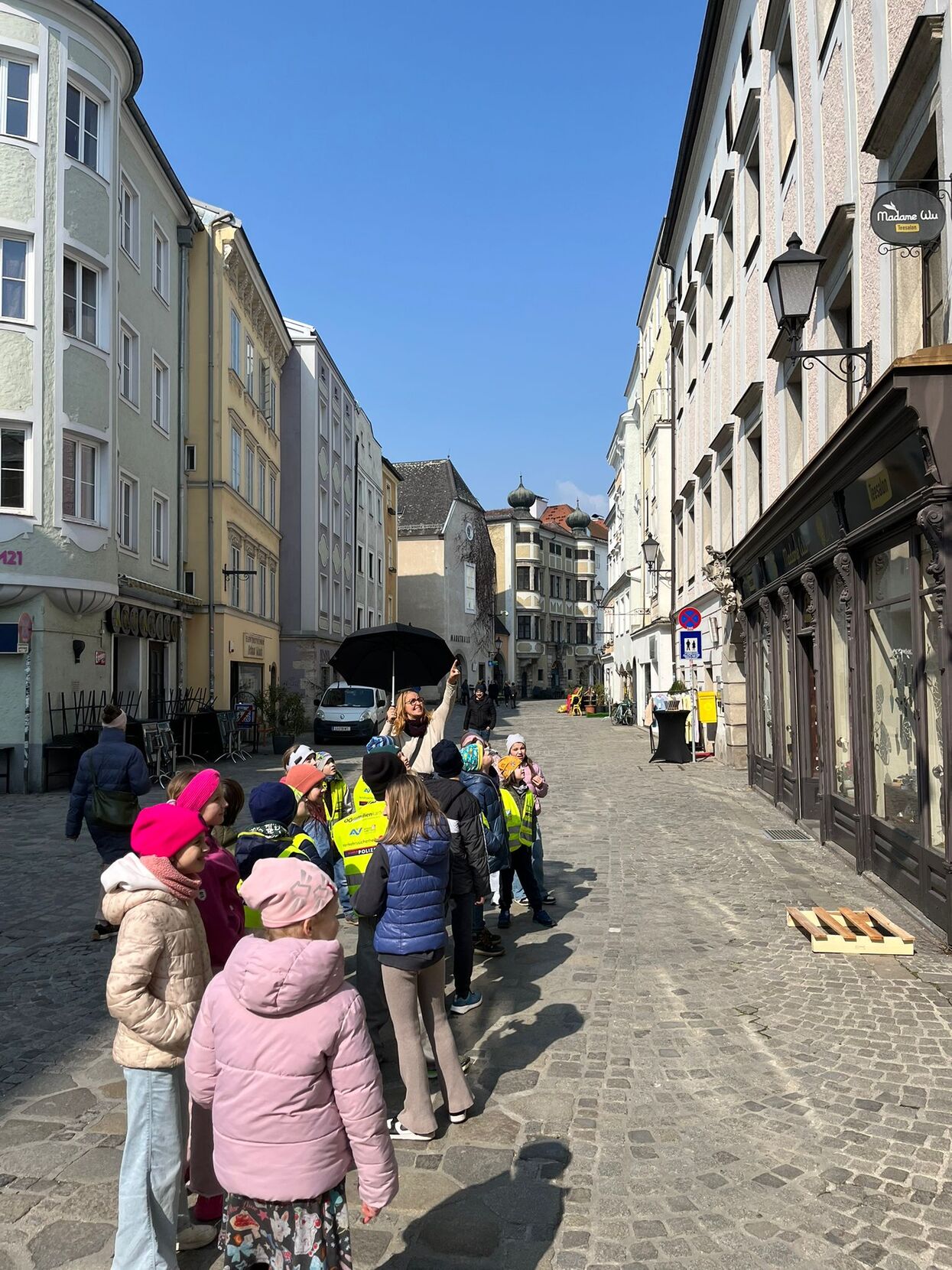 Die 3b erkundete den Pfarrplatz, den Hauptplatz und die Linzer Altstadt. Interessante Geschichten über unsere Heimatstadt wurden erzählt und die Kinder erfuhren, dass sich rund um den Pfarrplatz viele Geschäfte befinden, denen Nachhaltigkeit besonders wichtig ist. Beim Weltladen und beim Papiertiger durften wir sogar im Geschäft eine Runde gehen. Vielleicht kauft der Osterhase heuer da ein?