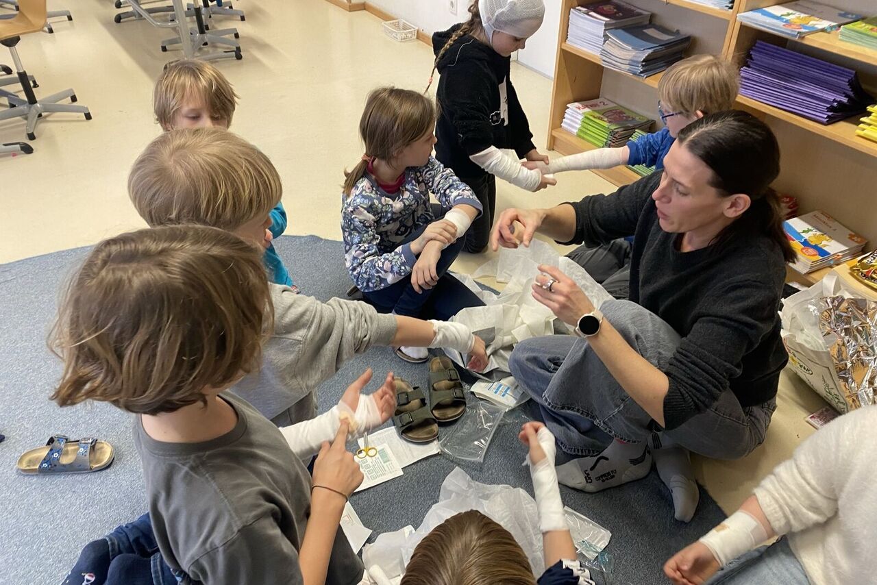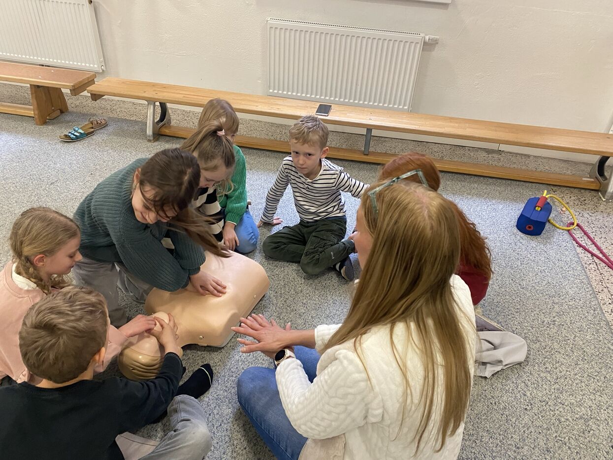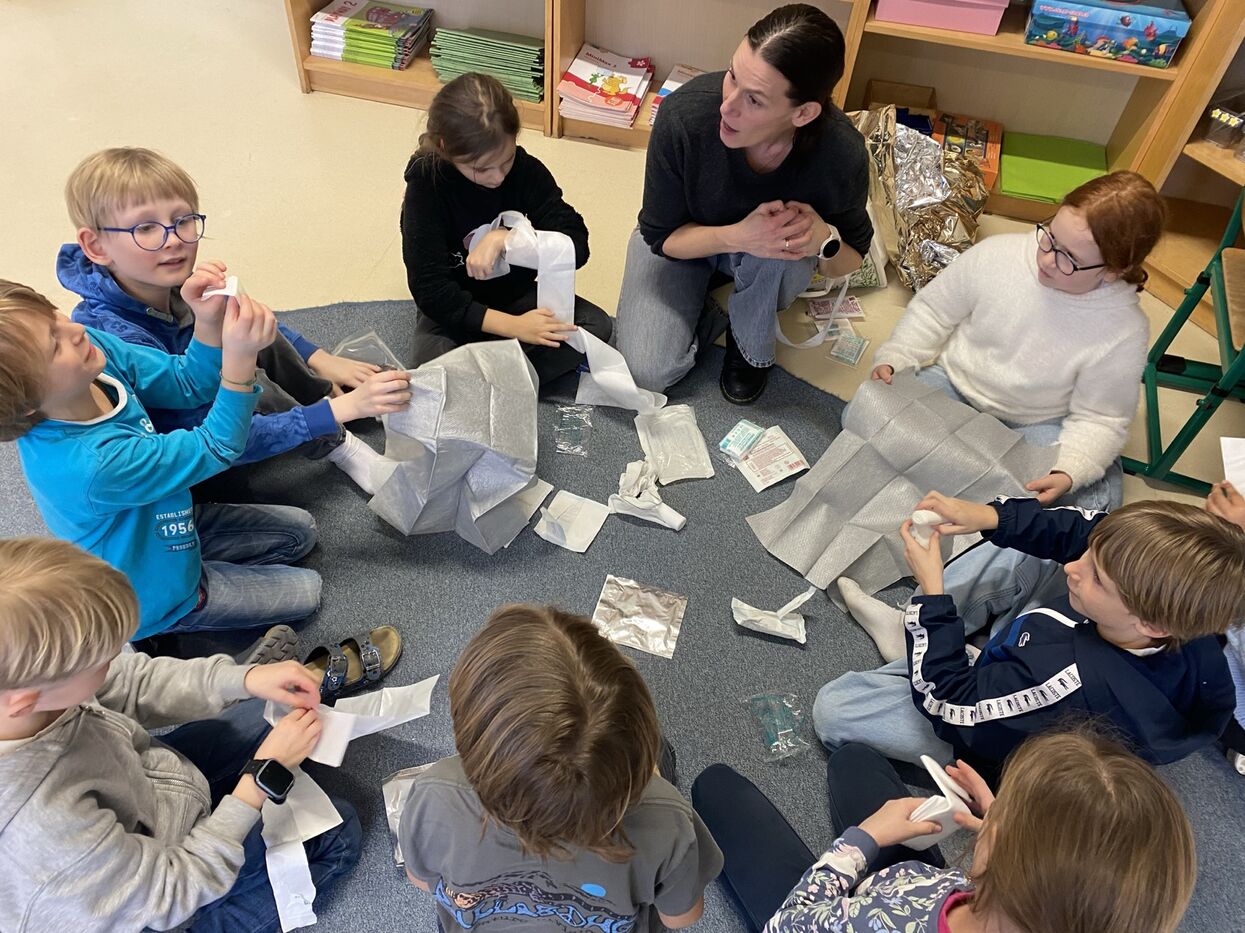 Im Stationenbetrieb lernten die Kinder verschiedene Verletzungsarten und die damit verbundenen Verbände kennen und durften diese auch gegenseitig anlegen. In einer weiteren Station übten die Schüler:innen die Herzdruckmassage, auch unterstützt durch ein sehr flottes Lied. Dabei trainierten sie die Intensität des Druckes und die Geschwindigkeit der Anwendung an einer Puppe, um einen Menschen möglichst gewinnbringend Erste Hilfe leisten zu können. In der dritten Gruppe wendeten die Schüler und Schülerinnen die W-Fragen bei einem Anruf Rettung, Polizei bzw. Feuerwehr an. Außerdem wurden „verunglückte Patient:innen“ in die stabile Seitenlage gebracht.