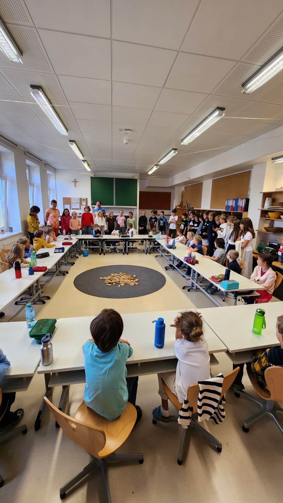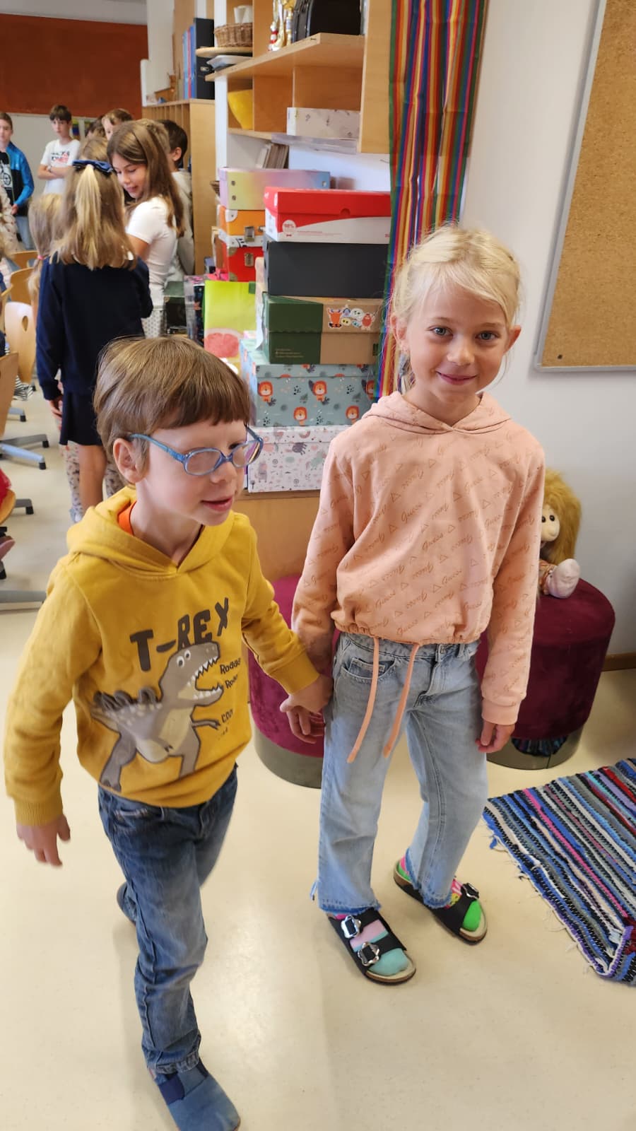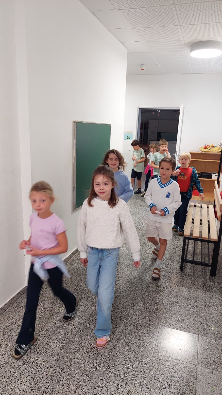 Bei einem ersten Kennenlernen führten die "alten Hasen" die Schulanfänger:innen durchs Schulhaus, erklärten wichtige Stationen und boten ihre Unterstützung für die kommende Zeit an. So haben die Jüngsten nun erfahrene Begleitung an ihrer Seite.